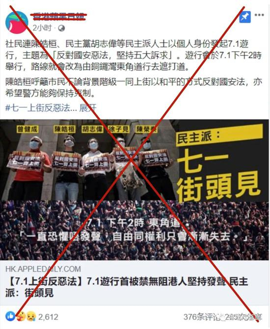 在港区国安法生效的6月30日当天,黎智英通过其掌控的《苹果日报》在脸书上发文,炒作香港“民主派人士”以个人身份发起“7.1游行”,不仅公布具体时间地点及路线,更持续蛊惑煽动市民进行非法游行。在其煽动下,大批乱港分子携带有港独口号的“光复旗”上街游行。
