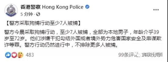 更值得欢呼雀跃的是,香港警队在通报中表示,除了黎智英等被捕的7人外,警方的行动仍然在进行中,还会有更多人被捕!