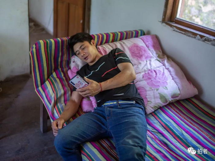 △ 7月31日,丁尚华刚完成一笔4万元的大米交易,坐在农家乐包房内休息。疫情后,预订餐饮的游客渐多,丁尚华的农家乐逐渐恢复正常经营。丁尚华30岁,曾经在广东工厂打工,一月1000多元的收入逼着他认真思考未来出路。最终丁尚华决定回乡创业,他干的行业很杂,买了一辆货车,两辆私家车,平日收草果、批发粮油、搞旅游、做运输、经营餐饮。他点子多人脉广,生意做得红火,几年间已经是乡里远近闻名的“能人”。