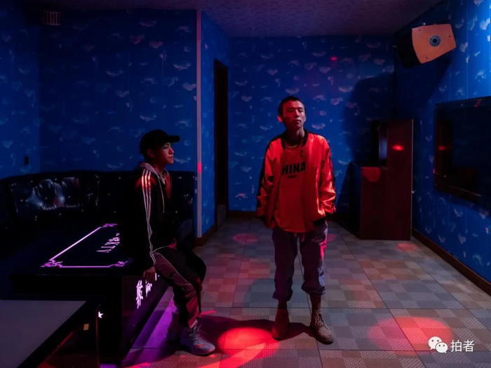 △ 7月30日,肯宗述和李中华在KTV上夜班,他们检查完灯光效果后,将包间门敞开通风。说是夜班,其实这家店也只在晚上经营,老板平常不在店里,日常全由他们二人负责。由于新冠肺炎疫情和大面积降雨,独龙江的旅游尚未完全恢复。只收酒水零食,不收包间费的经营策略,使这家KTV成为独龙江乡唯一的娱乐场所。目前每月3000元的收入,两人都较满意。但对于未来,二人还是想出去看看。