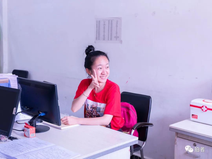 △ 7月30日,即将去县城监考的支教老师李思媛。临走前,学生们围在窗外,她突然转头,微笑着伸手示意。