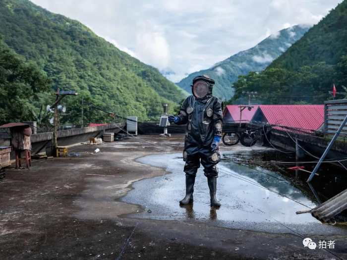 △ 7月28日,徐迅东身穿防护衣在办公室天台查看蜂箱。来自怒江州公路局的徐迅东,驻点巴坡村已一年多。作为扶贫队长,他一直在寻找成本低、易学习、利润高,且适合当地村民发展的致富之路。养蜂蜜是他们最近新上的项目,经过摸索,他发现普通蜜蜂养殖成本过高,养殖马蜂成本更低,马蜂窝的整体售价在800~1000元一个,其蜂蛹除了食用,还具备药用价值。