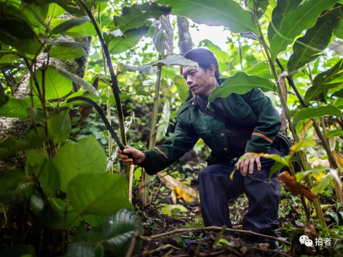 说是走山路,不如说是闯密林。平日农民上山的路只是一条脚下宽度不足20厘米的秘径。连日大雨,松软的土地和落叶已经完全搅和在一起,时常需要手拽着眼前的树干一起发力,脚下踩着的土地是缓坡渐进式的地形,一脚踩空,落差就是数米。