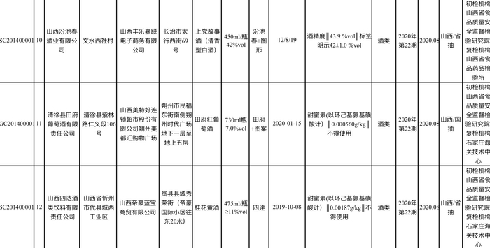 原标题:山西省市场监督管理局:两款酒涉甜蜜素,一款酒酒精度不达标