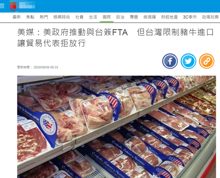 “中时电子报”称,知情人士透露,莱特希泽近日致函得克萨斯州共和党籍联邦参议员康宁(John Cornyn)称,“美台双方仍面临长期的贸易壁垒。台湾限制美国牛肉与猪肉产品进入巿场,尽管台湾先前曾承诺解决这些问题。”