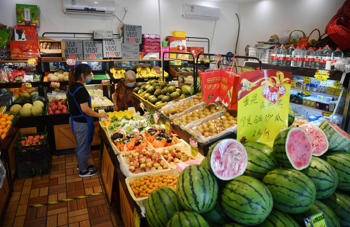 在这里经营的底商有水果店、肉店、家政服务公司、药店等。新京报记者 李木易 摄