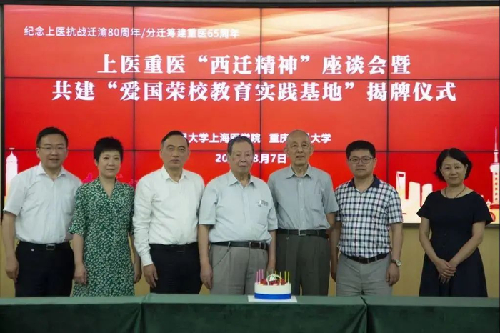 经上医和重医双方商议决定,复旦大学上海医学院和重庆医科大学将共建“爱国荣校教育实践基地”。基地将以“传承‘西迁’红色基因,激发爱国奋斗热情,培育涵养医者仁心”为宗旨,促进两校师生广泛交流、携手并进,深入推动西迁口述史研究,整理出版西迁系列档案资料和相关书籍,推出反映上医西迁、筹建重医历史的话剧,推动两校校史书籍编写和校史馆共建等,并面向重医建校70周年和复旦上医创建100周年,推出一批高质量的文化产品和文化活动,努力将基地打造成为在医科领域全国领先的师生爱国荣校实践教育示范基地。