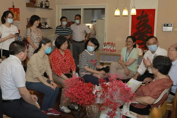 黄宗干教授毕业于上海医学院,曾在华山医院、中山医院工作,1958年赴渝创建了重医附一院血液科,至今92岁高龄仍然坚持每周门诊;夫人陈曼丽曾于1950年参加上海首批抗美援朝医疗队,后在华山医院从事护理工作,1958年主动报名参加援建重医的队伍。钱韵兰教授曾在上海第一医学院病理教研室任教,1957年参加创建重医的工作,长期从事病理学教学科研。看到母校来的领导和师生代表,听到熟悉的上海方言,老专家老校友们十分高兴。虽已步入耄耋之年,但他们精神矍铄、思路清晰,谈及当年西迁的点点滴滴,仍如数家珍。院领导代表母校师生向老专家老校友们当年放弃上海优越生活和工作条件、积极投身支援大西南建设致以崇高的敬意,并汇报了近年来复旦上医的发展动态和取得的成绩,详细询问了老专家老校友的身体状况和生活情况。院领导向老专家老校友们赠送了绘有老上医标志性建筑东一号楼图案的屏风摆件,并祝愿他们健康长寿、生活幸福。