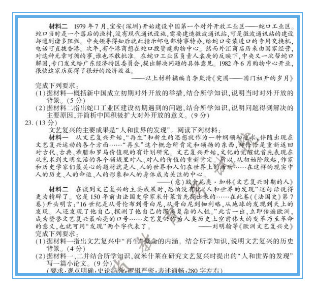 如果就难度进行横向比较的话,我觉得像上海卷、山东卷是很有难度的,他们比较注重学科融合,尤其关注对学生综合素养的考察。他们的题目中西贯通、古今关联,尽管我很欣赏命题人的视角和视野,但不得不说,试卷对学生的要求是很高的。