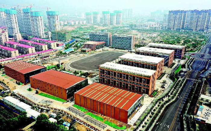 校园西面是一幢双层餐厅,餐厅外观设计别致,可同时容纳千余人就餐,目前在进行最后的扫尾工作。实验楼、图书馆、机房、阶梯教室等教学场所齐全完备,体育馆、游泳馆等活动场馆一应俱全。整个校园布局现代大气,又不乏精致巧思。