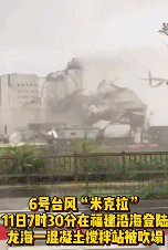 紧邻漳浦的龙海市也受台风影响。11日7时30分,当地一混凝土搅拌站建筑被台风吹塌,路过的行人拍下惊险一幕: