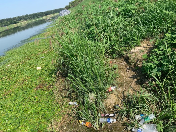 潮白河西岸:垃圾随处可见,每天装满两编织袋