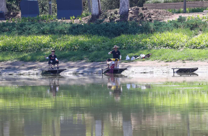 温榆河朝阳段:野钓者下河捞鱼竿,岸边烧烤