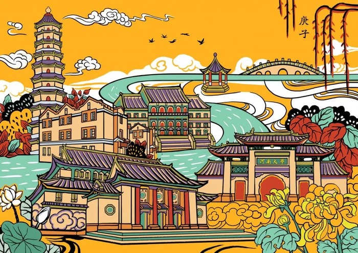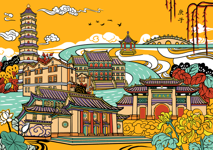 新生纪念品河大版木版年画。此创意将闻名世界的开封两大名片有机结合在一起,体现了对传统中原文化的尊重和对中华文明的自信,也是对河南大学所在地开封市的致敬。