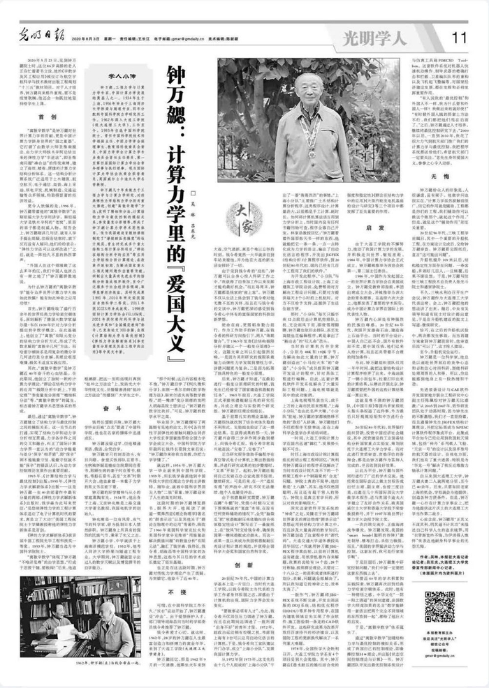 8月11日,光明日报头版以《蹇锡高:做中国自己的高性能材料》为题报道我校蹇锡高院士事迹。