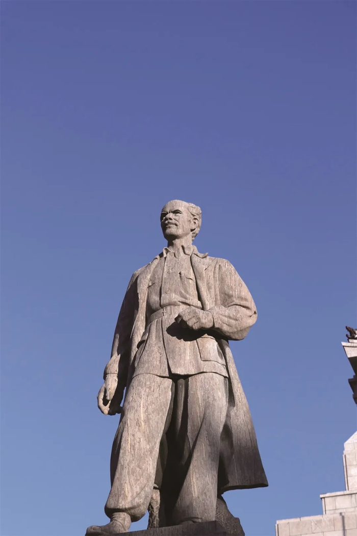 大医精诚,止于至善。在新民主大街吉林大学基础医学院院中央,有一尊诺尔曼·白求恩大夫的雕像。雕像高2.2米,为站立式圆雕。白求恩面部表情凝重,目视前方,左手臂挽起,右手垂于身旁,身穿八路军服,外披大衣,正迈步走来。雕像栩栩如生,早已成为长春这座城市和吉林大学的文化符号了。