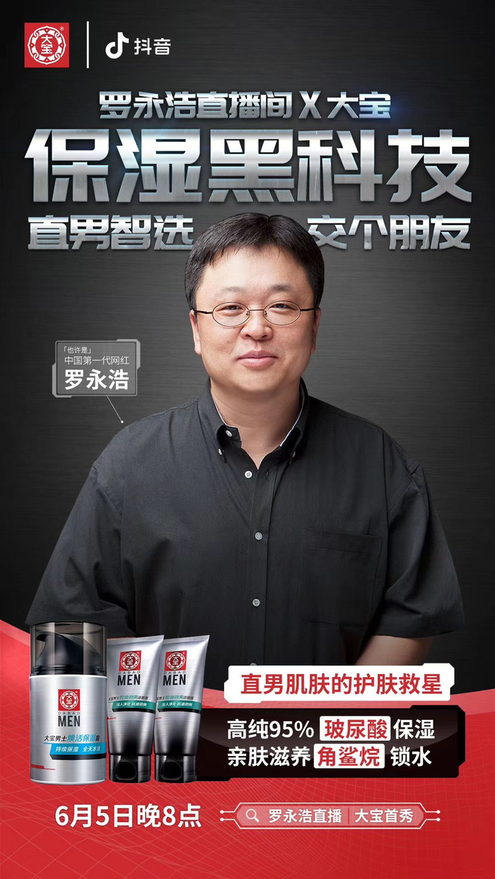 2020年6月5日,罗永浩和助理正在老罗直播间畅聊着当天直播的重头戏之一——大宝男士焕活保湿露“小银瓶”。“直男智选”,“服务人民的才是最好的”,“大家要一起精致起来”,伴着老罗金句,大宝在京东乳液面霜好物排行榜一跃冲到榜首,原本备的3倍的货量当天被一扫而空。