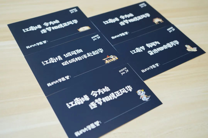 各学院部分2020届升学深造、高质量就业的模范毕业生和在校优秀学子,在愿景系列明信片上手写对新生的美好祝愿与殷切激励。以我手写我心,以我情励萌新,朋辈教育缘启江南,引导新生适应大学生活,指导专业学习,树立大学目标,引领奋进人生,将我之愿景镌刻进每一位新江南人的血脉里。