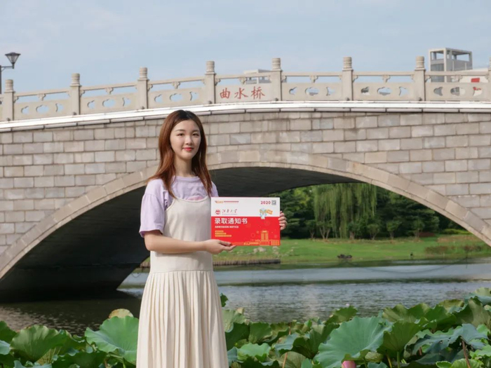 录取通知书拍摄出镜:曹旌文(2020届人文学院毕业生,已保研江南大学)