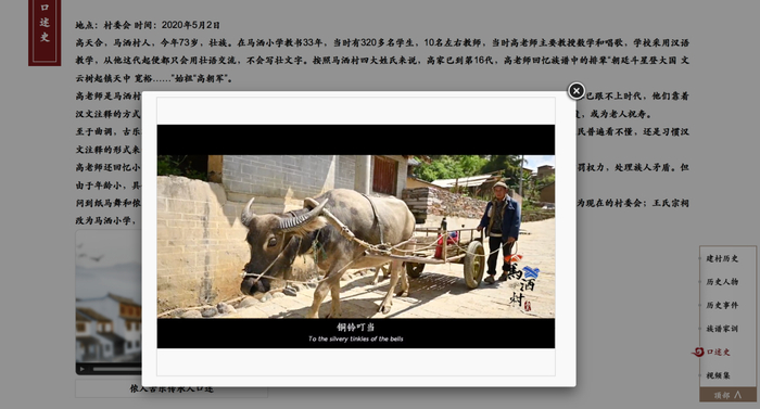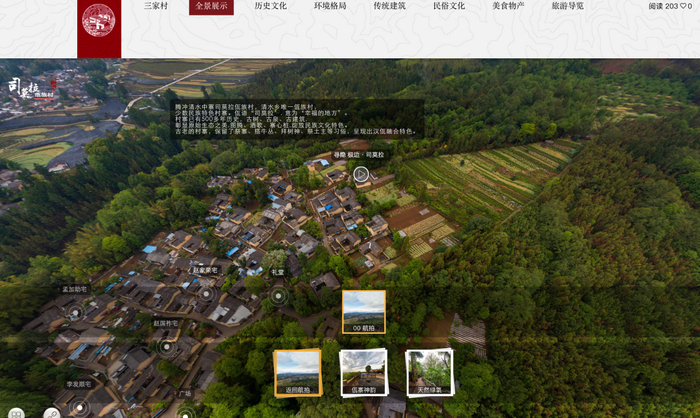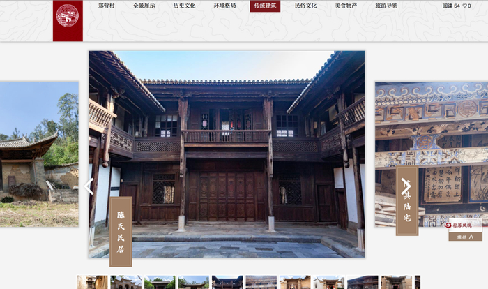 在中国传统村落数字博物馆网站上,每个村落单馆涵盖全景展示、历史文化、环境格局、传统建筑、民俗文化、美食物产、旅游导览等7大块内容,以全景漫游、三维实景、图片、文字、视频、音频等多种形式全方位展现中国传统村落独特价值、丰富内涵和文化魅力,集知识性、趣味性、实用性和可视性于一体。