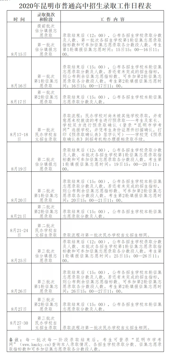 根据2020年昆明市普通高中招生计划,依据初中学生学业水平考试成绩统计,经昆明市招生委员会主任会议研究决定:
