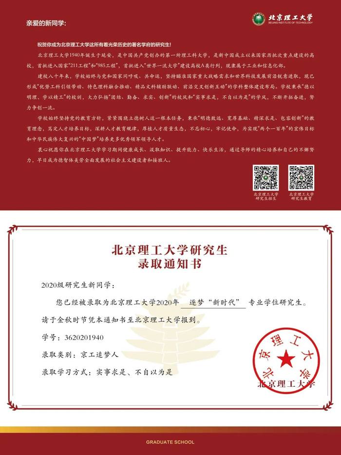 欢迎加入北京理工大学,这里将是你人生逐梦的新起点。