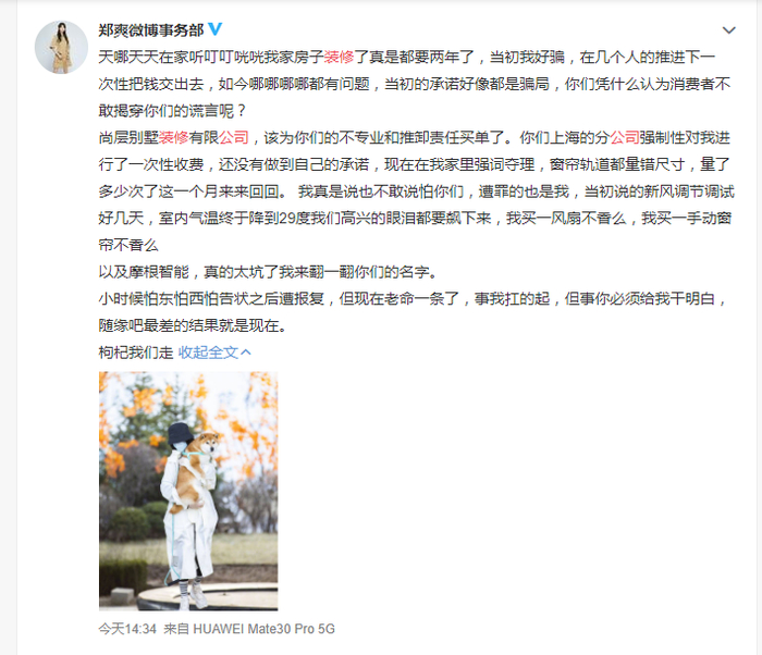 一入装修深似海,这事郑爽也赶上了。