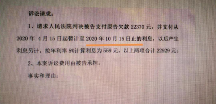▲利息的计算,起诉时一般会要求暂计出一个数额,一般要求暂计至起诉之日。上图暂计至2020年10月15日,不可,因为不知案件何时结案,裁判文书何时生效,被告何时能履行完毕。有可能被告早于此日期履行完毕。