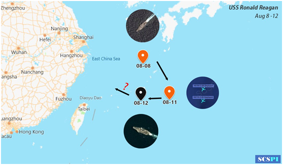 “南海战略态势感知计划”8月13日发布“里根”号航母活动轨迹图