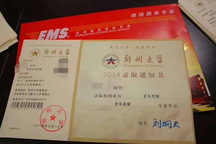 “录取通知书”这几个大字,是我校书法学院院长、前中国书法家协会主席、中国著名书法家张海老先生亲笔提写,使得录取通知书更加有收藏和纪念意义。