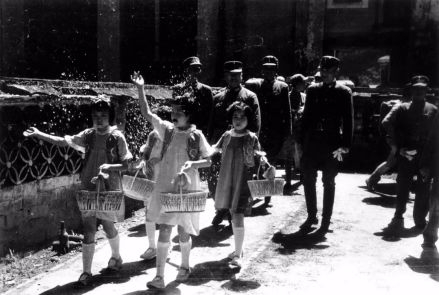 可爱的小女孩挥洒着花瓣,