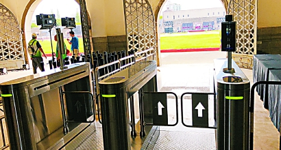 为了对人员进行有效管理,江湾体育场在步道入口处设置人脸识别系统,市民只需提前注册小程序,通过“刷脸”即可入场,在通过闸机的同时,还能自动进行体温测试。如果是老人或孩子,也可以通过家人的手机在家里一并注册认证,大大方便了没有手机的市民。很多市民锻炼时不爱带手机,只要第一次注册成功,之后就可以“两手空空”轻松进入体育场锻炼。