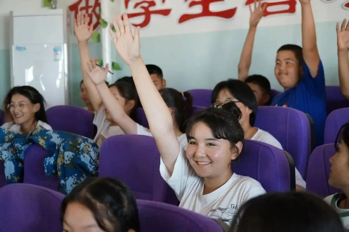 在疫情得到有效控制后,我们在布尔津县初级中学开展了一起规模为600人的“战‘疫’有我,同‘屏’共振”抗疫教育云课堂,邀请到学校在防疫工作中作出突出贡献的志愿者白娜为学生们介绍了自己的志愿服务情况。