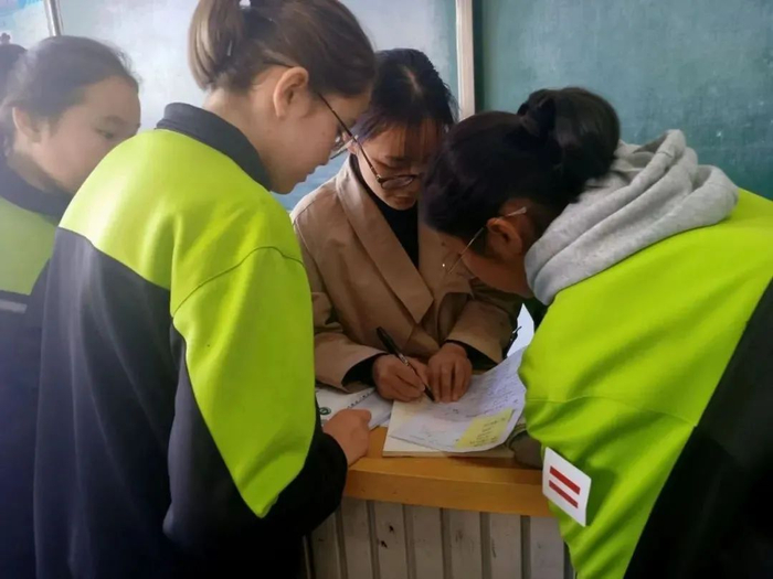 初为人师,左手是责任,右手是爱。看似做着普通的事,但一举一动都在学生的眼里,一言一行都在他们模仿的轨迹上。从第一天进班的局促与不安,到后来校内公开课上的游刃有余;初来乍到的我们经验比不上优秀的老教师,在虚心请教的同时,也逐渐明白了研支团成员更应该把握的重点。半大的孩子,心是纯粹的,他也许听不懂我们讲的每一个知识点,但能看出课堂的丰富和充实;他也许看明白我们写的每一个字,但也会猜到我们在这个字上注入的情绪。像一颗星照亮另一颗星,像一朵花叫醒另一朵花,像青春“末梢”的我们用热情去感染即将绽放的他们。