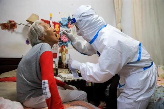 为了全员检测,有街道大妈拿起大喇叭,海蛎子味的大连话一边边回荡在小区楼院:“妹(没)做核酸检测的,赶紧到社区排队”;有基层干部在核酸检测点,用A4纸打出“先登记、后检测”,贴在后背秒变行走的告示贴……