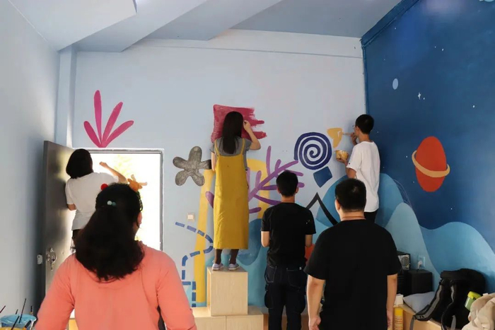 对乡村学子而言,基础教育固然重要,但志愿者们也希望能够同时为孩子打开一扇窗,用第二课堂开阔孩子的眼界。基于此,梦想教室的概念落地生根。陆帅男和小伙伴在一间十几平方的小教室中融入了不同的功能分区,包括小舞台、读书角、涂鸦休闲区、远程授课区等,把孩子们的梦想绘入教室墙绘中,建成了一间属于孩子们的梦想教室。“我们有一间梦想教室就以宇宙为主题,教室里有很多孩子亲手绘制的涂鸦,他们在这里阅读、唱歌、上视频课......我想告诉他们,心怀梦想,通过努力就可以有实现的机会。”