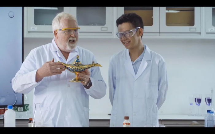 作为今年“云上科学营”北京化工大学特色项目,特别邀请我校外籍教授戴维开展化学实验类科技秀。实验秀通过日常生活中触手可及的化学现象,形成可视化的化学反应,从而为小营员们带来冲击视觉的剧场观感,最后通过趣味完美的讲解帮助营员更充分地理解实验原理,还通过云上交流的方式,利用互动视频增强代入感。