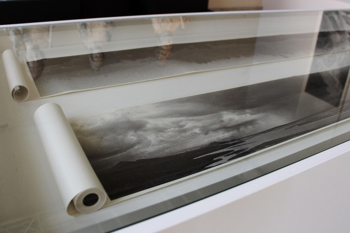 秋麦告诉记者,这是他的作品第一次在中国和美国之外的其他国家展出,所以这次法国的展览对他而言具有特别的意义。秋麦试图通过摄影和传统 (过去,现在和将来) 保持一个联系,而把这样的作品和法国当地的历史及地理相连接恰恰很合适。此次展览包括了秋麦《山海图》系列的几幅作品。秋麦介绍,这个系列的创作灵感来自于超越照片被识别或被限制于某一具体地点的固有思维。每一张照片都是一幅地图,无论多么抽象或微小,都来自其周围世界的广阔空间,秋麦希望通过这几件作品,观众在欣赏中国风景的独特表达方式的同时,也与大自然的共通性产生共鸣。“在旅行受到限制的时候 ,当我们觉得与家人和朋友被距离分开的时候 ,这样的共鸣格外地重要。”