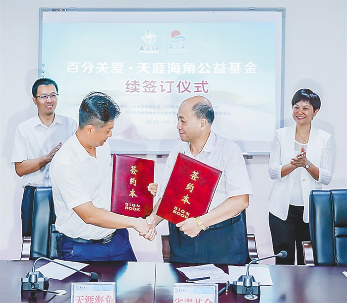 省青少年希望基金会与三亚旅投集团天涯海角公司签署“百分关爱·天涯海角公益基金”第二个五年协议。