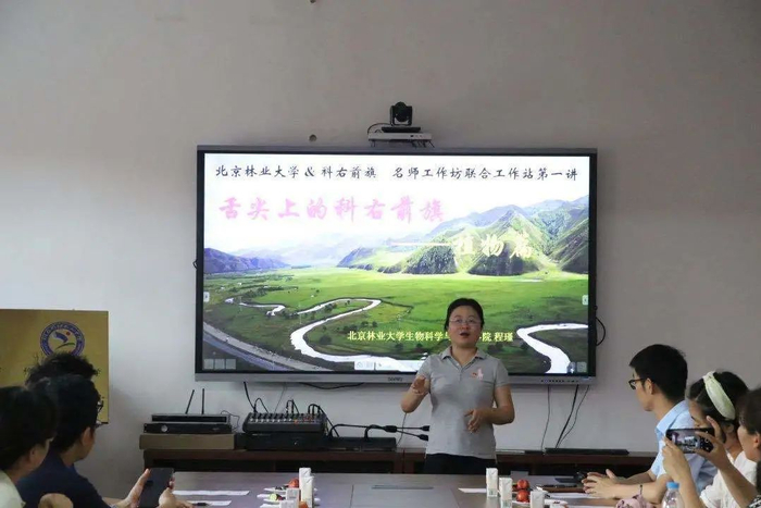 报告会前,北京林业大学和科右前旗联合筹备的“云端”教研室正式成立,程瑾支教教授的生物是首个启动这一项目的学科,这场报告也是教研室成立后的首场报告会。在会上,程瑾深入浅出地介绍了科右前旗常见可食用植物,并分享中学阶段适合开展的创新性科研训练项目,介绍一年来探索和总结的以“趣”促“趣”开发内化生物学教学模式。