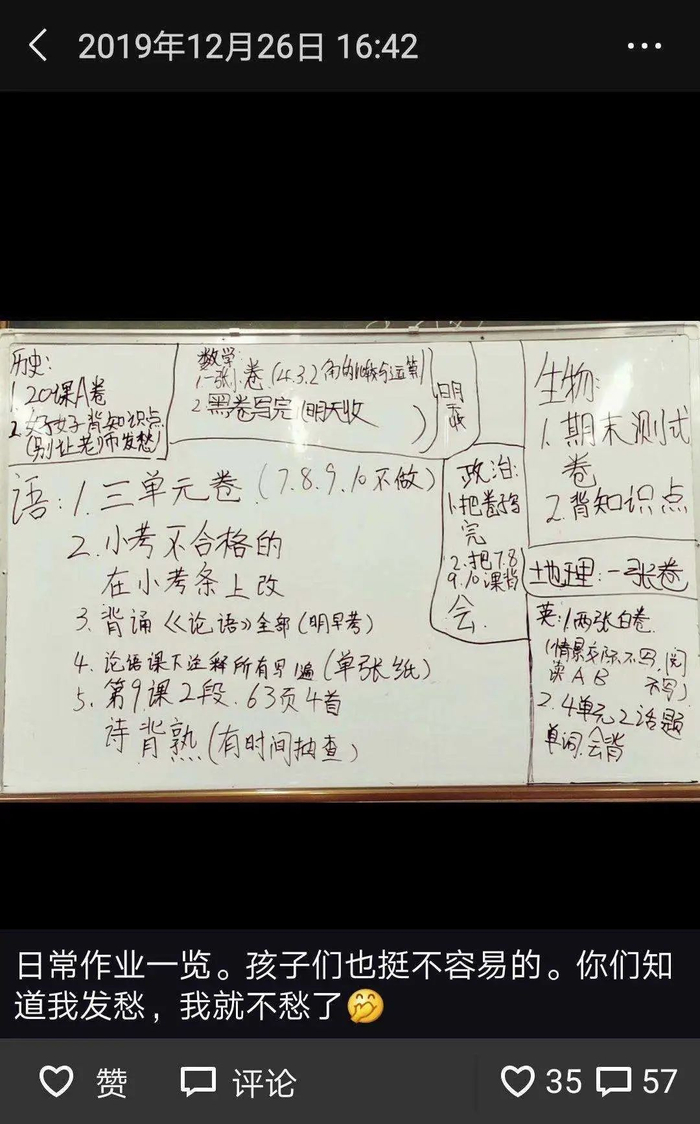 一天黄晓像往常一样走进班级,白板上写着各科的作业。在历史作业下面,他的课代表额外加了一句话:好好背知识点,别让老师发愁。