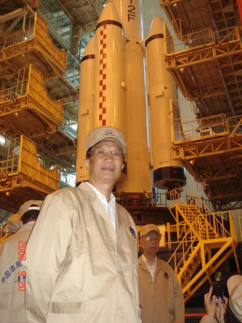 潘德炉院士在卫星发射现场工作