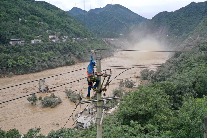 8月18日,国网甘肃省陇南文县供电公司碧口供电所工作人员正在电力抢修。经济日报-中国经济网记者赵晶 摄