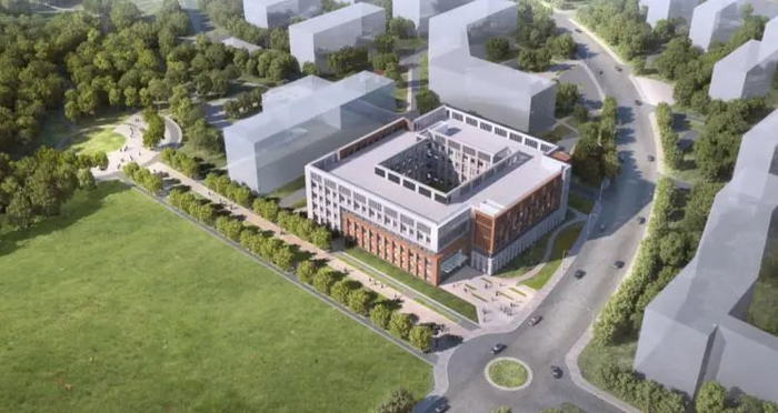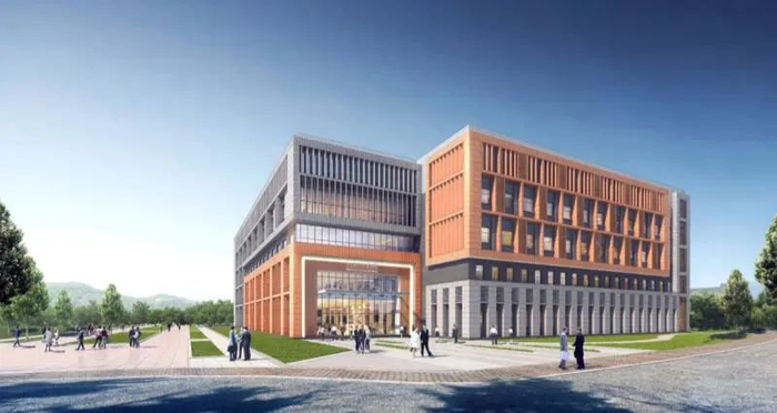 材料学科楼位于校园主轴西侧,北朝校园主入口,是一个重要的校园节点空间,适宜形成校园公共活动场所,兼顾院系形象和校园整体风貌。整体布局呈双L型,相互咬合错落、首尾相衔,状似一串手链落在校园里面,同时围合成一方尺度适宜的院落,有聚集能量、融汇思想的寓意,形成能量手链的整体设计理念。实验和教研组团形成的双L体量,通过错动在基地东北形成开阔的主入口形象广场,与内部门厅、展示、会议等功能有效整合,同时在西南形成次入口,便于日常使用。