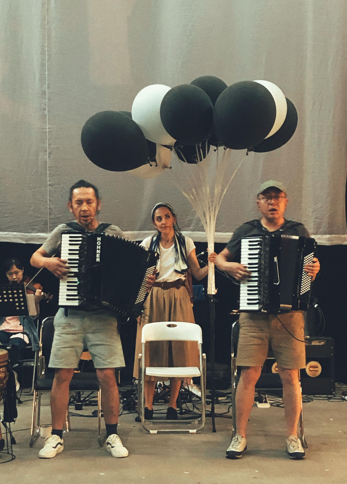 而对于河乐队能通过这部作品再聚首,安娜觉得像在经历一场童话。2018年,安娜首次登上戏剧舞台出演了央华戏剧作品《犹太城》,对于从来没有接受过表演训练的安娜而言,她选择作品的唯一标准便是“能和自己产生关系”。《犹太城》是关于自己民族的一段历史,而《流浪之歌》中的女孩“安”,则是跟自己人生经历有着密切关系。而《流浪之歌》这场现实中的“童话”,便是能与结识20年的老友们再续前缘,把他们的音乐带到戏剧舞台,“这种创作过程是非常幸福的。”