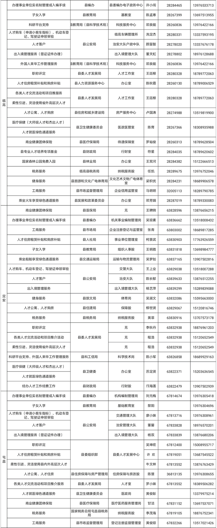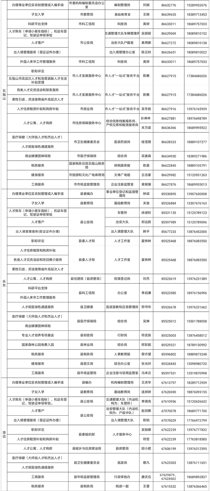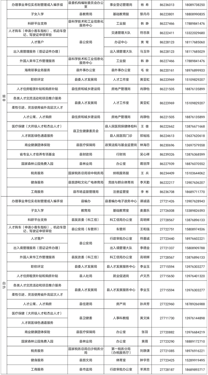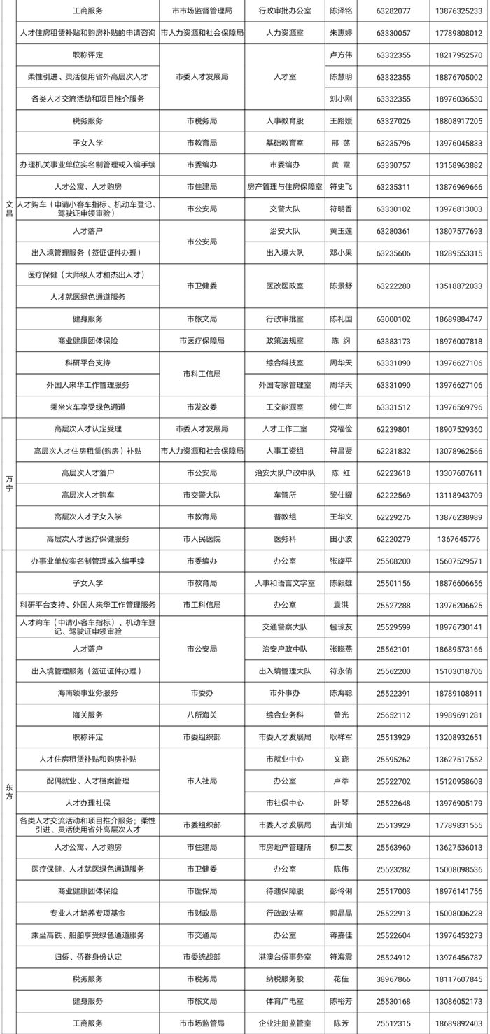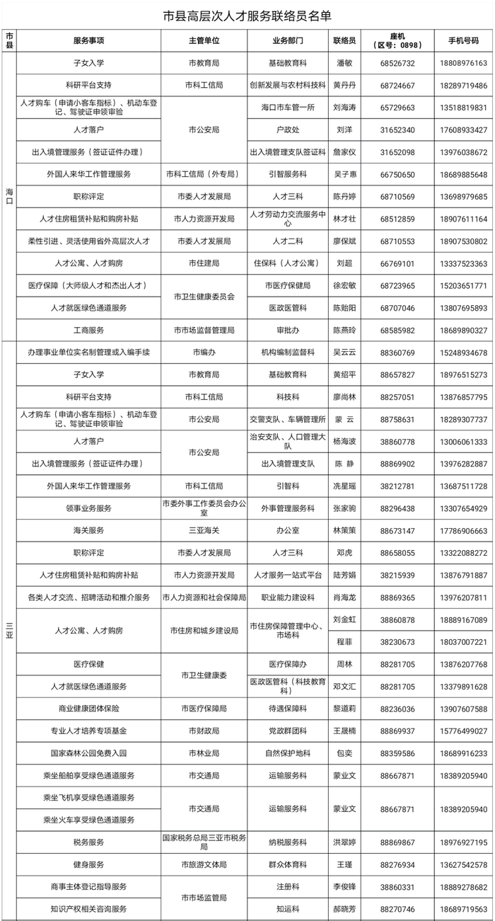 海南省高层次人才服务337位联络员联系方式公布↓