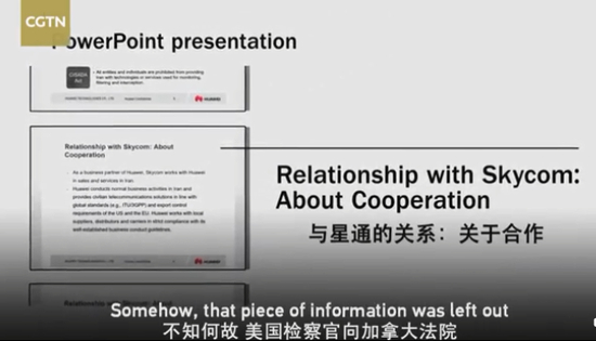 在那次会面中,孟晚舟用PPT介绍了华为通过一家名为星通的公司在伊朗的业务联系,以及华为在遵守美国制裁方面的努力。