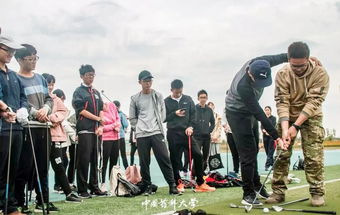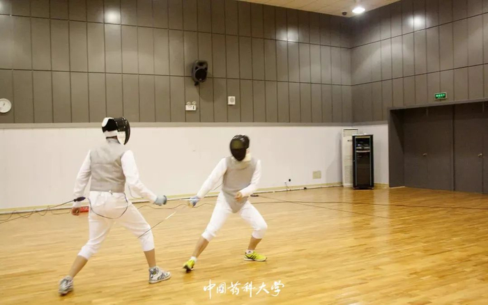 药大只有理论课、实验课?当然不是,学校还有丰富的体育课,自主选择网球、击剑、高尔夫……总有一项运动适合你。只见同学左手将球高高抛起,右手甩起球拍,一个猛扣,完美的一击;击剑运动要求击剑人员不断观察、不断思考、迅速做出反应,拥有极强的技巧性;胳膊伸直,腿稍微弯曲,球杆平面与地面水平,胳膊旋转45°,弯曲上升,再向下一挥手,球就顺势飞出。没有练习过这些运动的萌新也不必担忧,体育老师会给予耐心的指导。