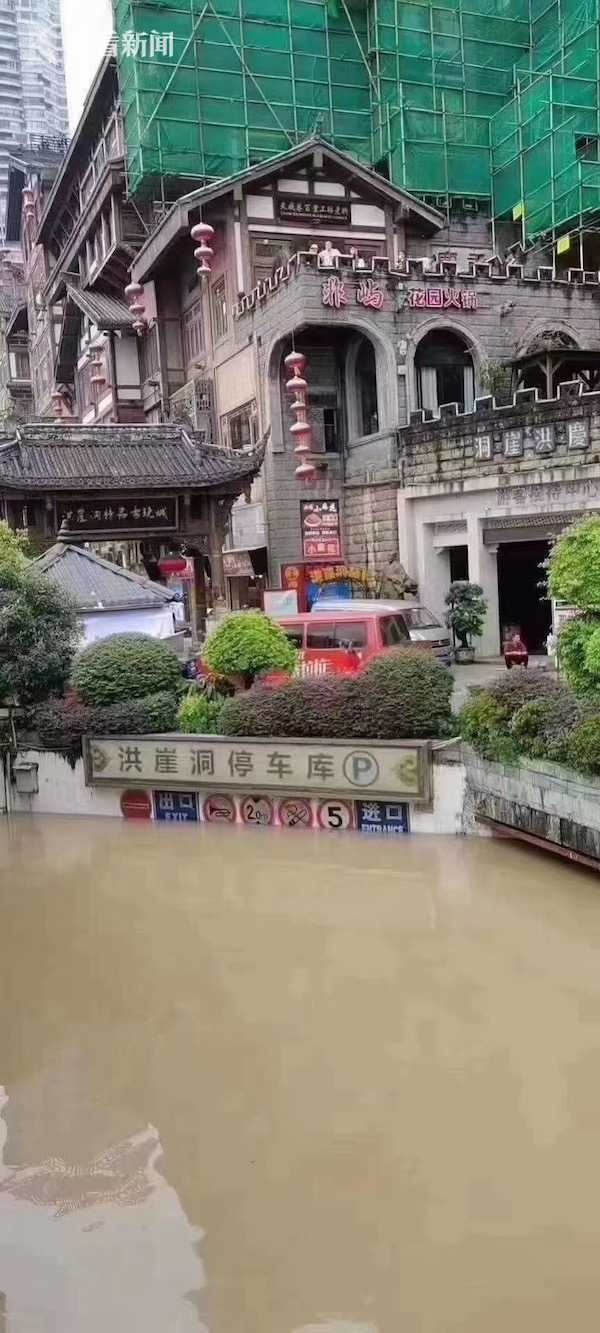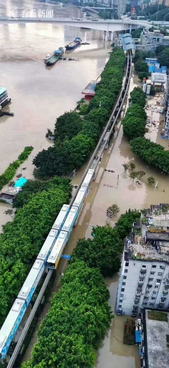 被洪峰一起被淹没的,还有重庆另一个地标—千年古镇磁器口。目前,磁器口沿江一条街已全部“隐”于水下,被戏称为“水上威尼斯”。上涨的水位也长滨路沿江主干道全部淹没;重庆网红景点“洪崖洞”变成了“水帘洞”,其1楼以下包括-1楼、-2楼车库被淹;更是让轻轨列车“乘风破浪水上漂”,几乎和轮船擦肩而过。