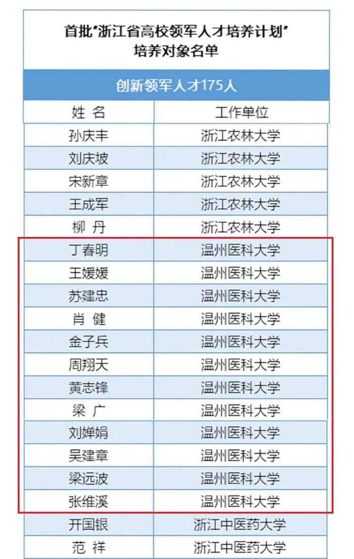温医大40名教师入选首批“浙江省高校领军人才培养计划”